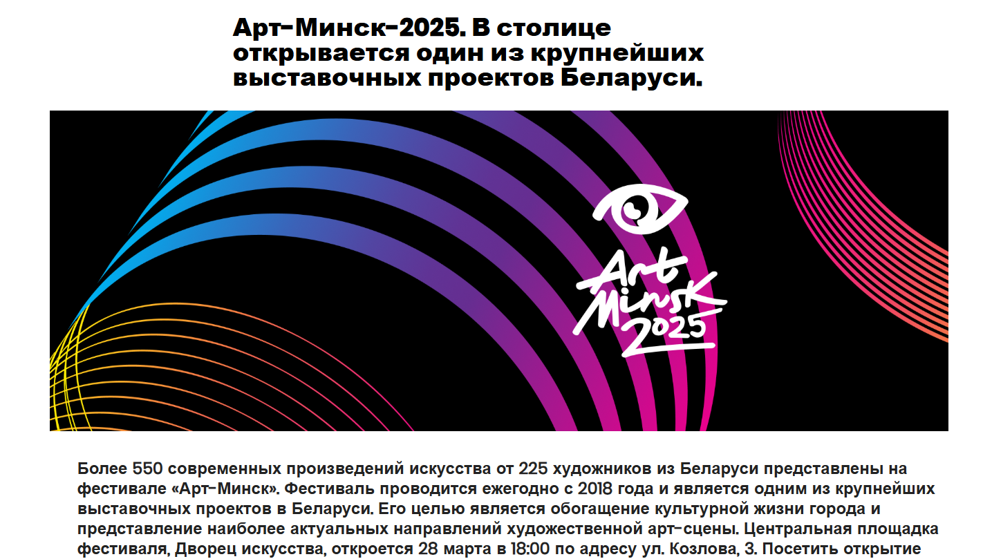 Выставка “Арт-Минск” проходила с 28 марта по 04 мая 2025г. На выставке участвовало три фотографии Дмитрия Разахацкого – “Луч Уильяма Тернера”, “Машина времени” и “Ворота вечности”. “Арт-Минск” проводится с 2018 года и является одним из крупнейших выставочных проектов Беларуси. В 2025м году на фестиваль поступило более 1300 заявок от потенциальных участников, что, по заявлению организаторов, стало абсолютным рекордом за все годы его проведения.